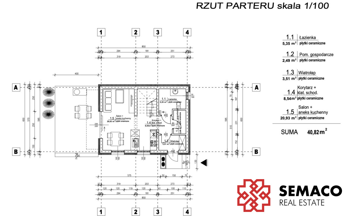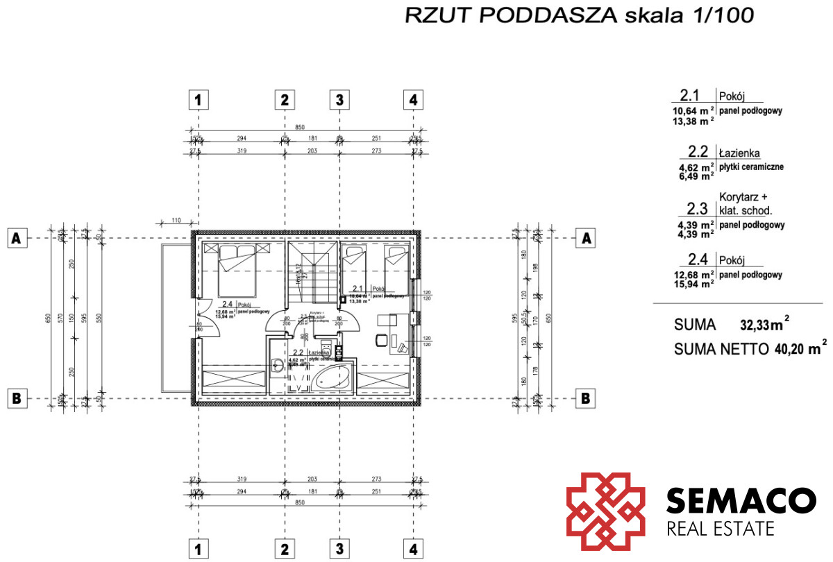 - Powierzchnia całkowita: 81,02m² (parter + piętro)