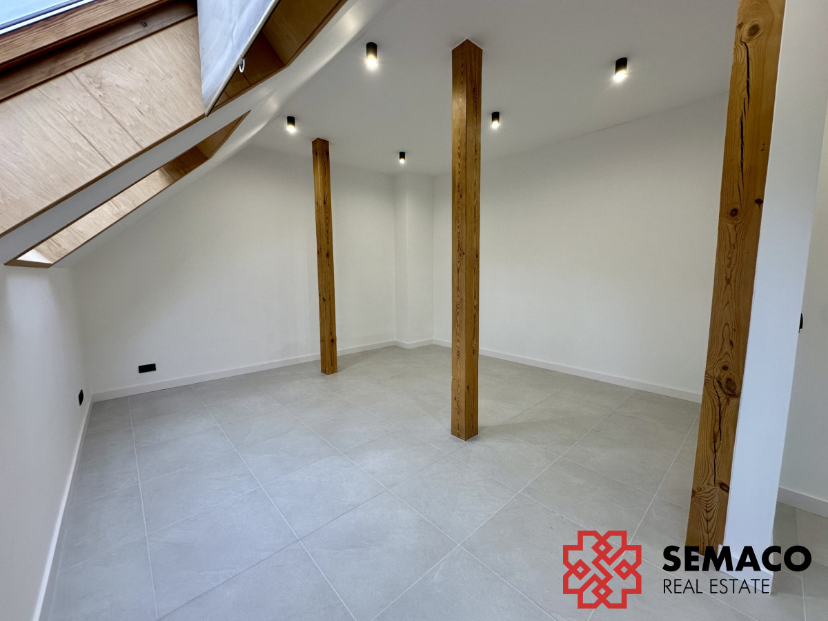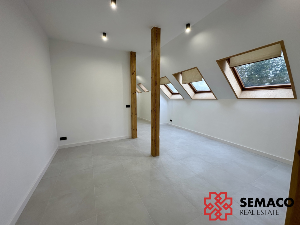 Lokal o powierzchni 45m2, znajduje się na 2 piętrze w świeżo wyremontowanym budynku. W lokalu jest ogrzewanie podłogowe. Wszelkie instalacje wodno-kanalizacyjne, elektryczne oraz szybki internet światłowodowy są gotowe. Do części wspólnych należy: - kuchnia na parterze; - taras z wyjściem z kuchni; - ogród. Budynek wyposażony jest w alarm oraz monitoring zewnętrzny i wewnętrzny.