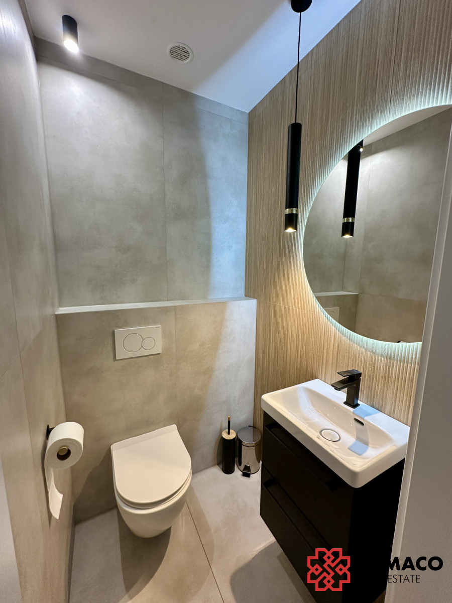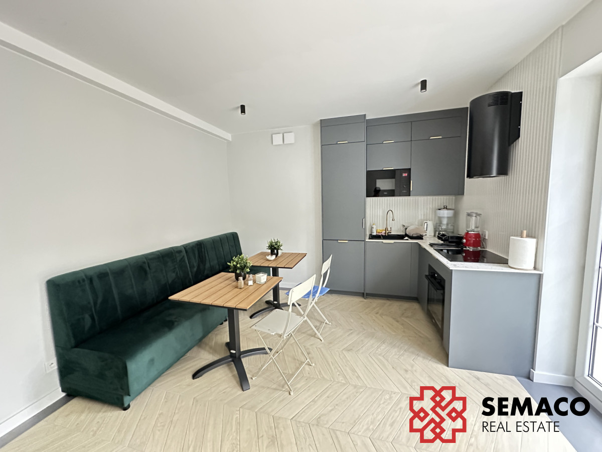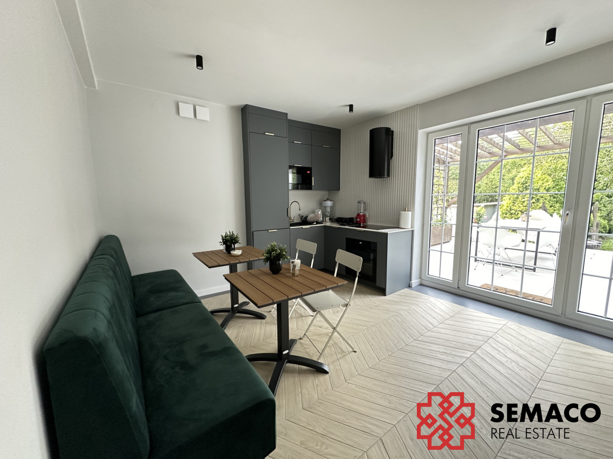 Lokal o powierzchni 38m2, znajduje się na parterze w świeżo wyremontowanym budynku. W lokalu jest ogrzewanie podłogowe. Wszelkie instalacje wodno-kanalizacyjne, elektryczne oraz szybki internet światłowodowy są gotowe. Do części wspólnych należy: - kuchnia na parterze; - taras z wyjściem z kuchni; - ogród. Budynek wyposażony jest w alarm oraz monitoring zewnętrzny i wewnętrzny.
