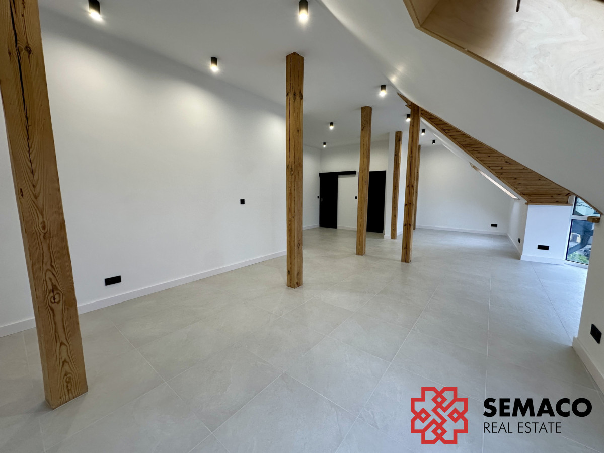 Lokal o powierzchni 55m2, znajduje się na 2 piętrze w świeżo wyremontowanym budynku. W lokalu jest ogrzewanie podłogowe. Wszelkie instalacje wodno-kanalizacyjne, elektryczne oraz szybki internet światłowodowy są gotowe. Do części wspólnych należy: - kuchnia na parterze; - taras z wyjściem z kuchni; - ogród. Budynek wyposażony jest w alarm oraz monitoring zewnętrzny i wewnętrzny.