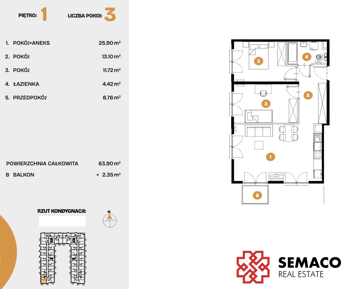 Na sprzedaż: 3-pokojowe mieszkanie 63,90m2