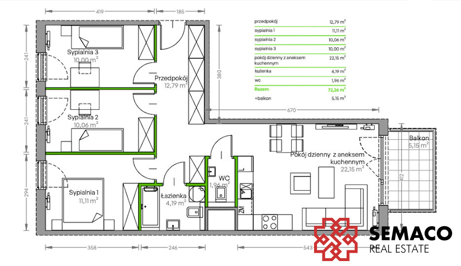 - Powierzchnia:72,26 m2