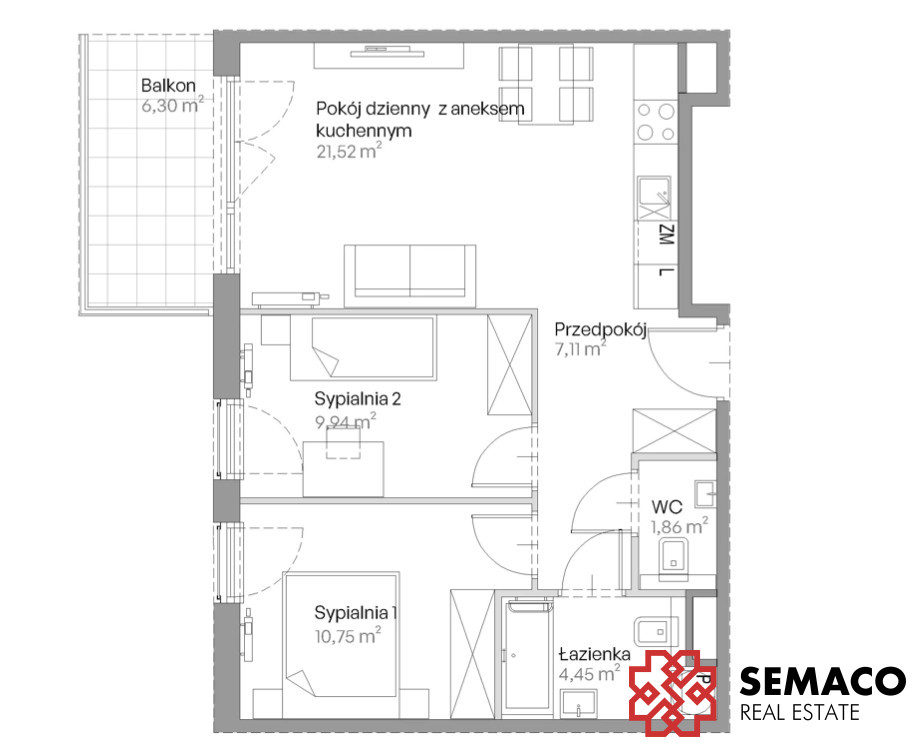 - Powierzchnia:55,63 m2