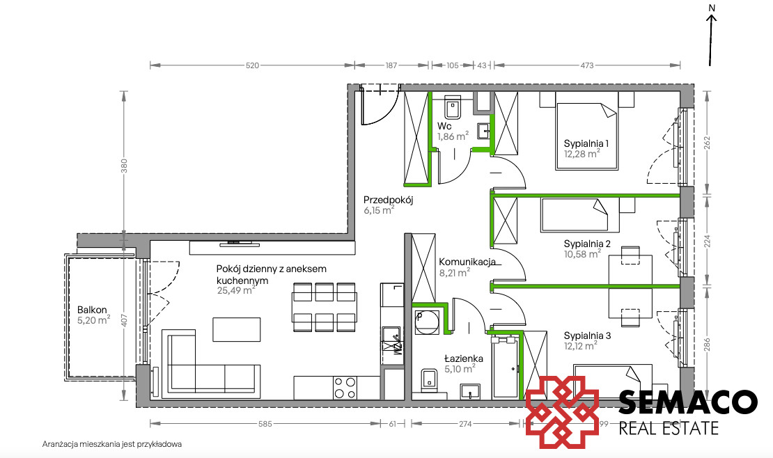 Przedstawione wizualizacje i grafiki mają charakter wyłącznie poglądowy i stanowią wyłącznie materiał pomocniczy, ułatwiający zorientowanie się w ogólnym wyglądzie oferowanej nieruchomości.