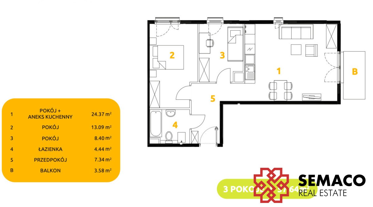 57,64 m2, 2. piętro, 3 pokoje, ul. Banacha, Górka Narodowa, gotowe do odbioru