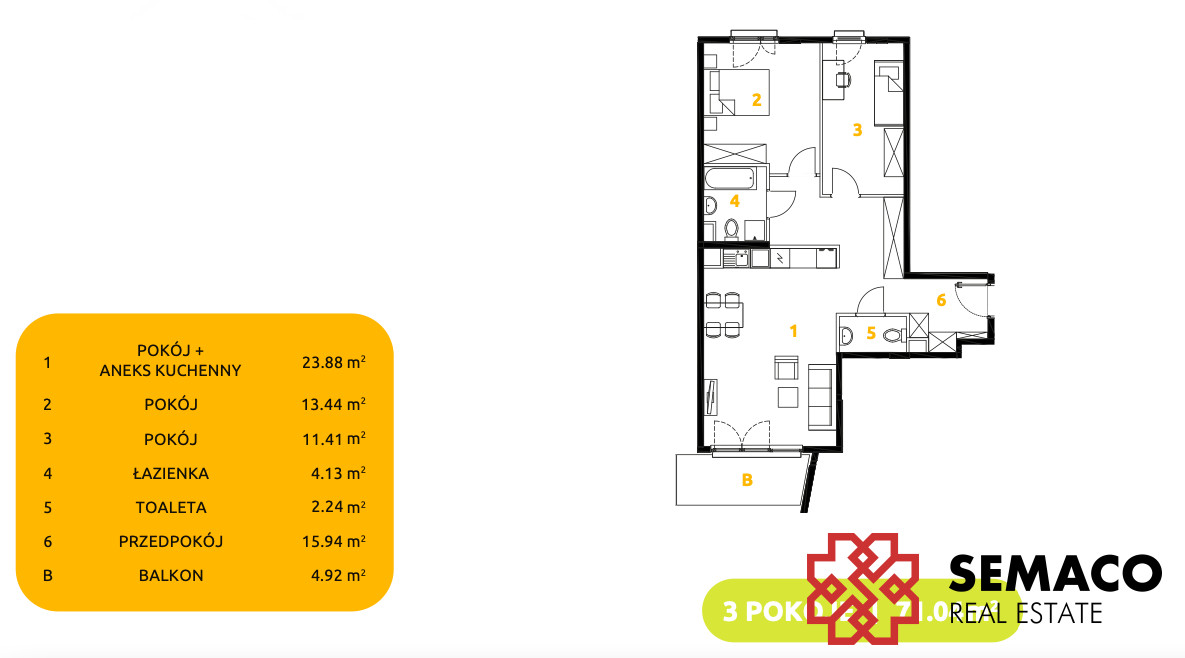 Mieszkanie 71,04 m² | 3 pokoje | balkon | ul. Banacha - Górka Narodowa | gotowe do odbioru