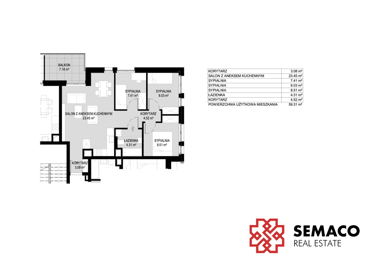 - Powierzchnia:59,31 m2