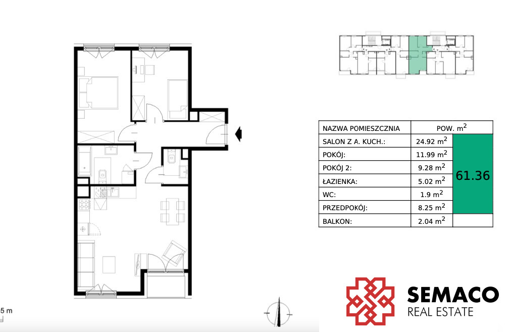 - Powierzchnia:61,36 m2