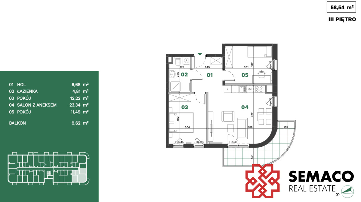 3-pokojowe mieszkanie 58,54 m² z balkonem 9,25 m² w nowej inwestycji w Krakowie - Płaszowie. Kameralny budynek, świetna komunikacja oraz bliskość parków.