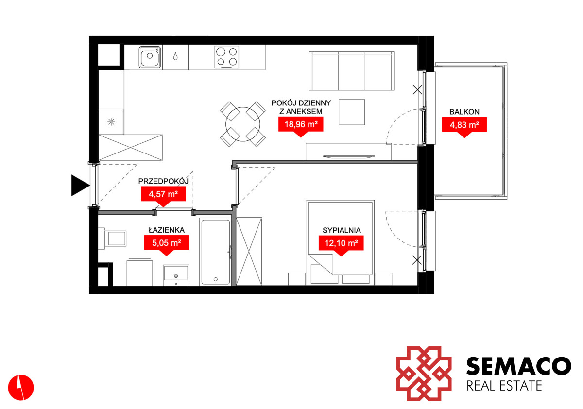 2 pokoje - 40.68 m2 - najlepsze na start.