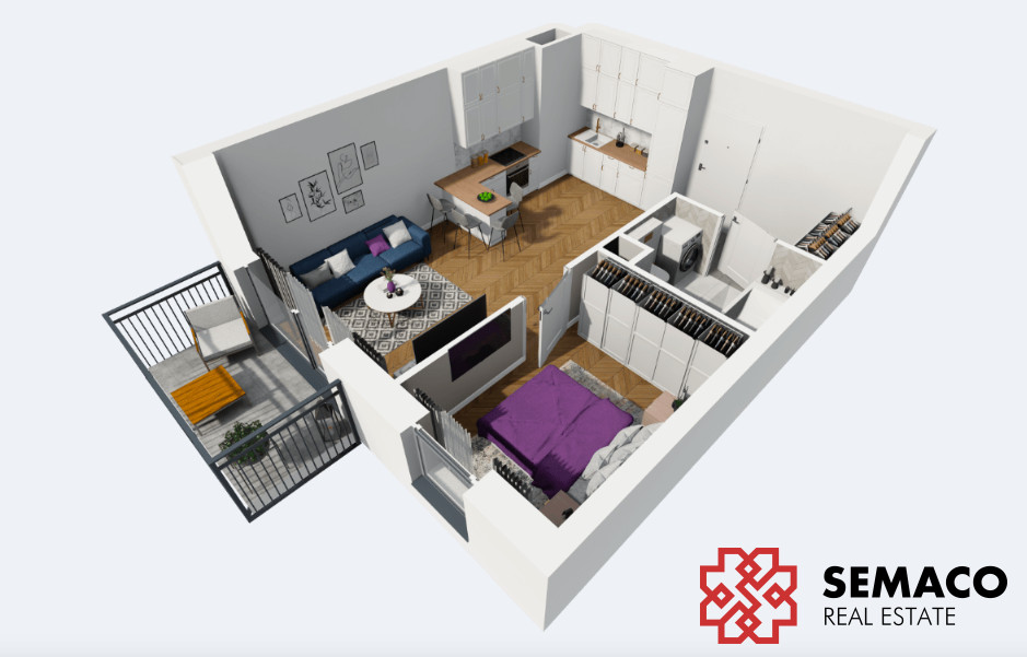 Przedstawione wizualizacje i grafiki mają charakter wyłącznie poglądowy i stanowią wyłącznie materiał pomocniczy, ułatwiający zorientowanie się w ogólnym wyglądzie oferowanej nieruchomości.