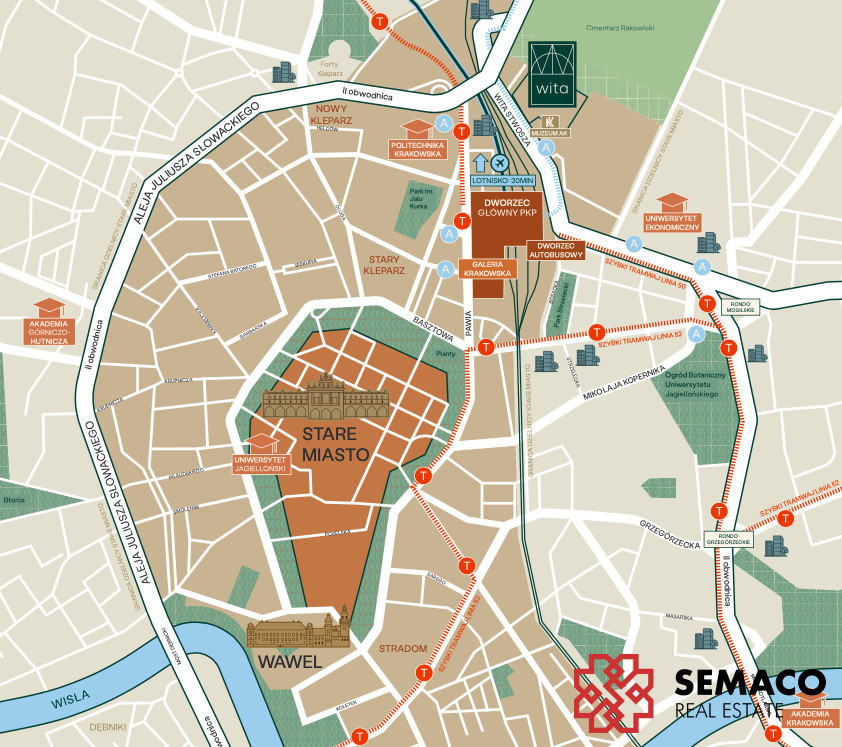 tylko 5 minut spacerem do Dworca Głównego i Galerii Krakowskiej
