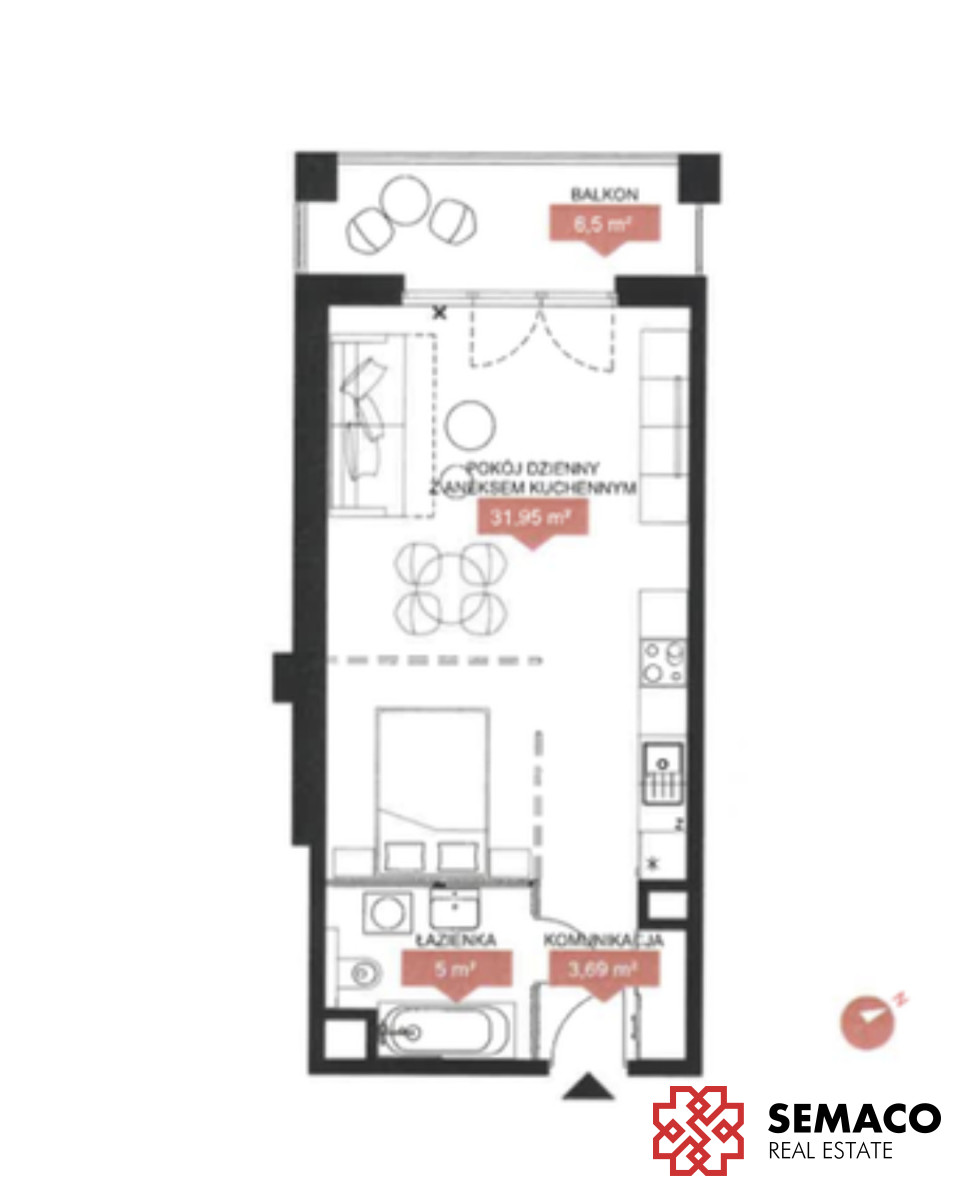 Układ mieszkania (40,64 m²):