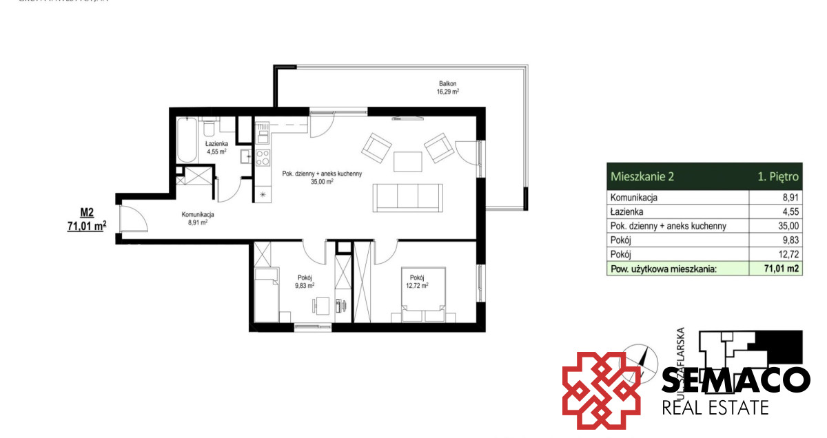 Kameralna inwestycja składająca się tylko z 13 mieszkań - po 3 mieszkania na piętrze. Mieszkania w inwestycji będą w standardzie posiadać ogrzewanie podłogowe oraz zamontowaną klimatyzacje w sypialni oraz salonie. Wysoki standard wykończenia klatek schodowych, budynek wyposażony w windę oraz parking podziemny.