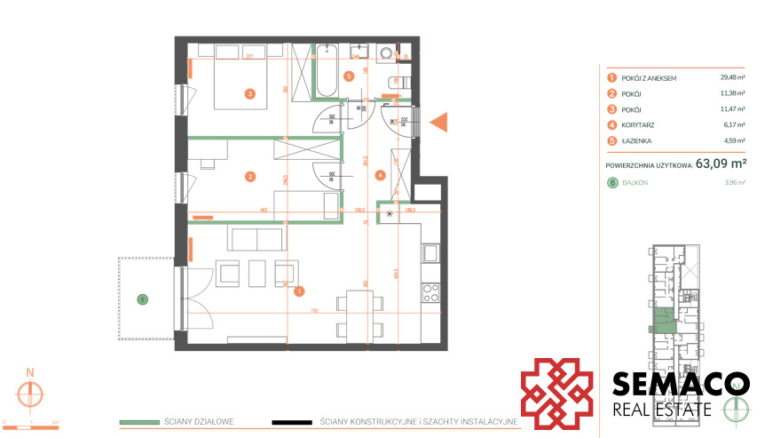 63,09 m2, 3 pokoje, 1 piętro, ul. Portowa, Zabłocie,