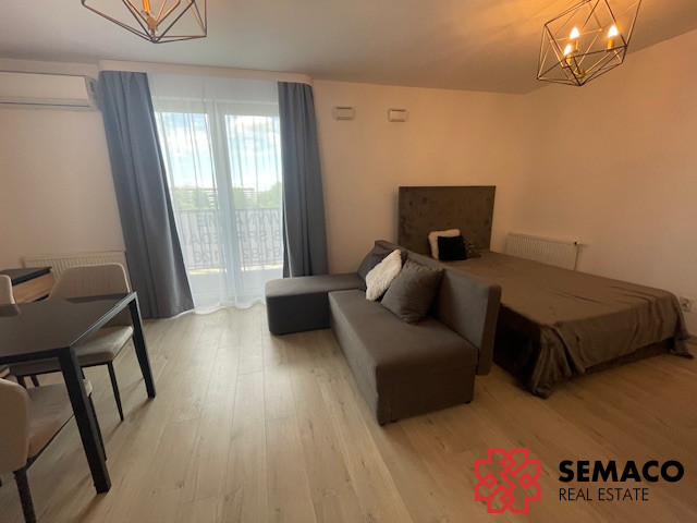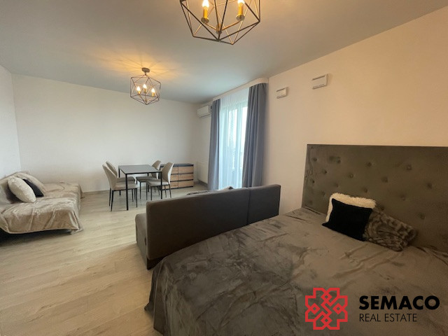 Jasny salon z wydzieloną strefą sypialnianą (możliwość zamknięcia i wydzielenia osobnej sypialni)