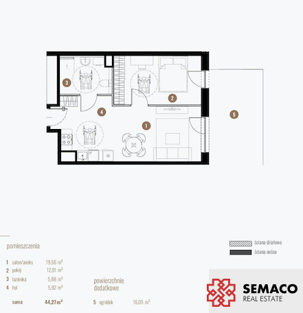 Metraż: 44,27 m²