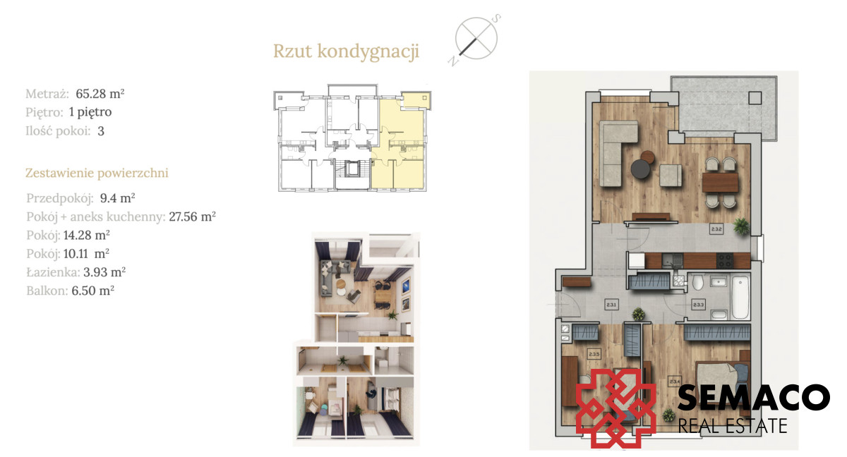 - Powierzchnia:65,30 m2