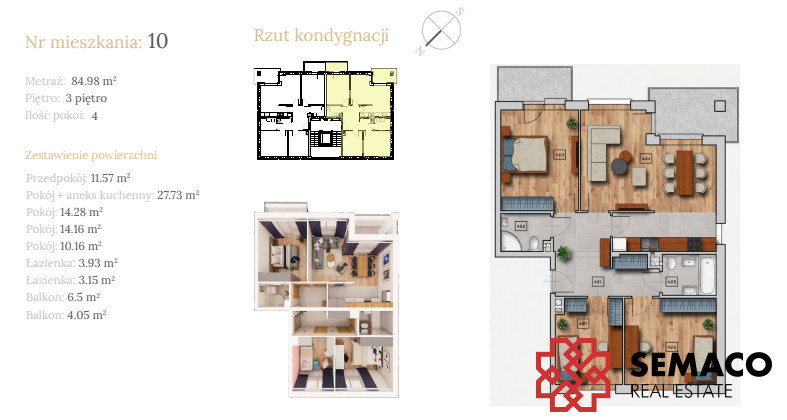 Mieszkanie o metrażu 85,05 m2 zlokalizowane na 3 piętrze w 3-piętrowym budynku.