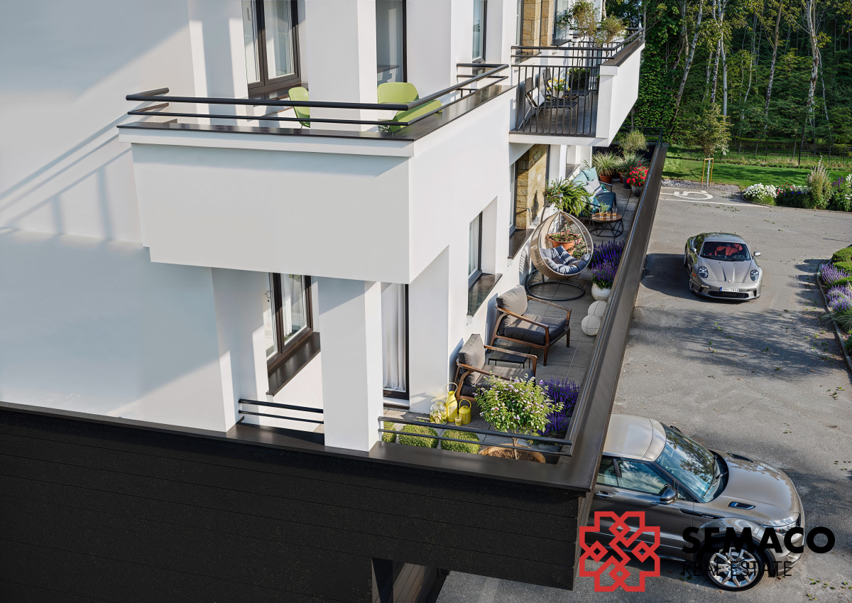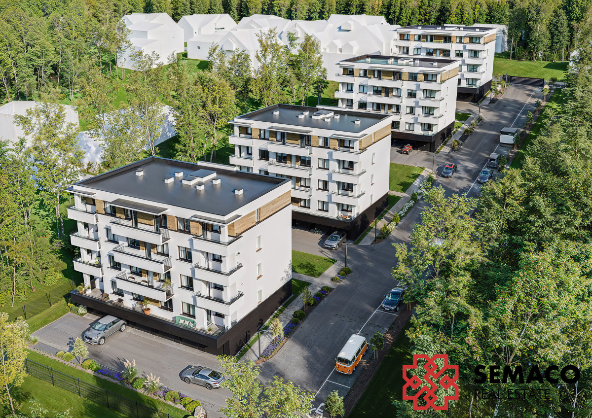 Kameralny projekt obejmuje budowę 4 trzypiętowych bloków usytuowanych kaskadowo.