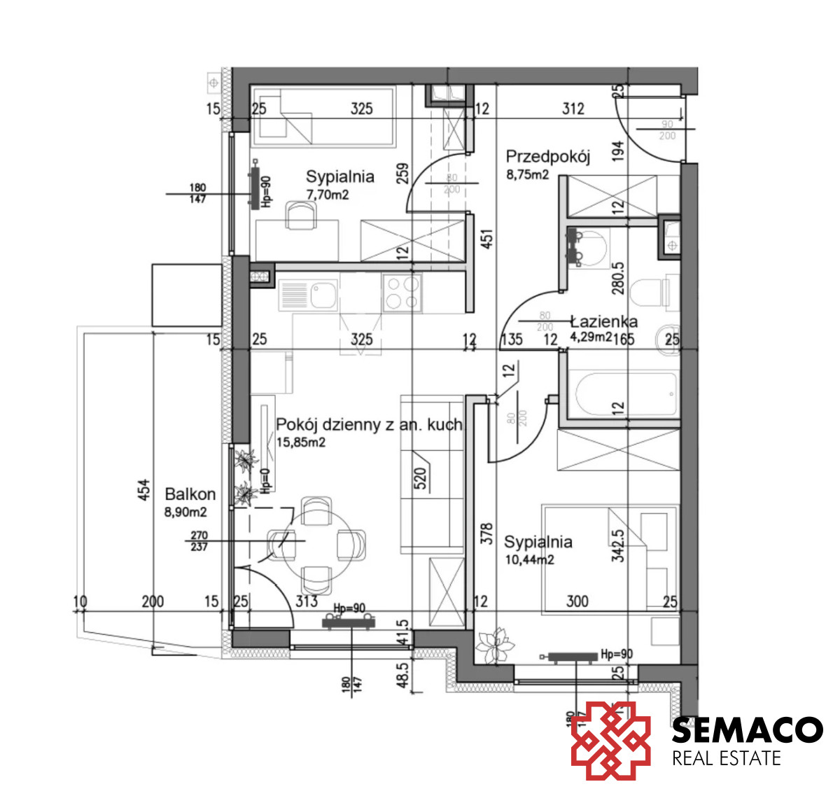 Pokój dzienny z aneksem kuchennym: 15,85 m²